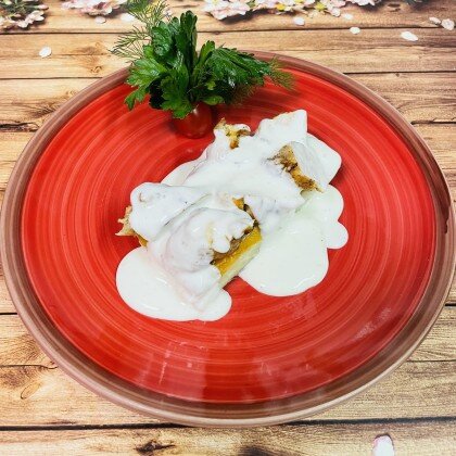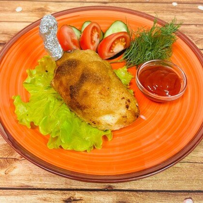 Сочные куриные котлетки в хрустящей панировке из белых сухариков. Подаются в белом соусе и с картофельным пюре